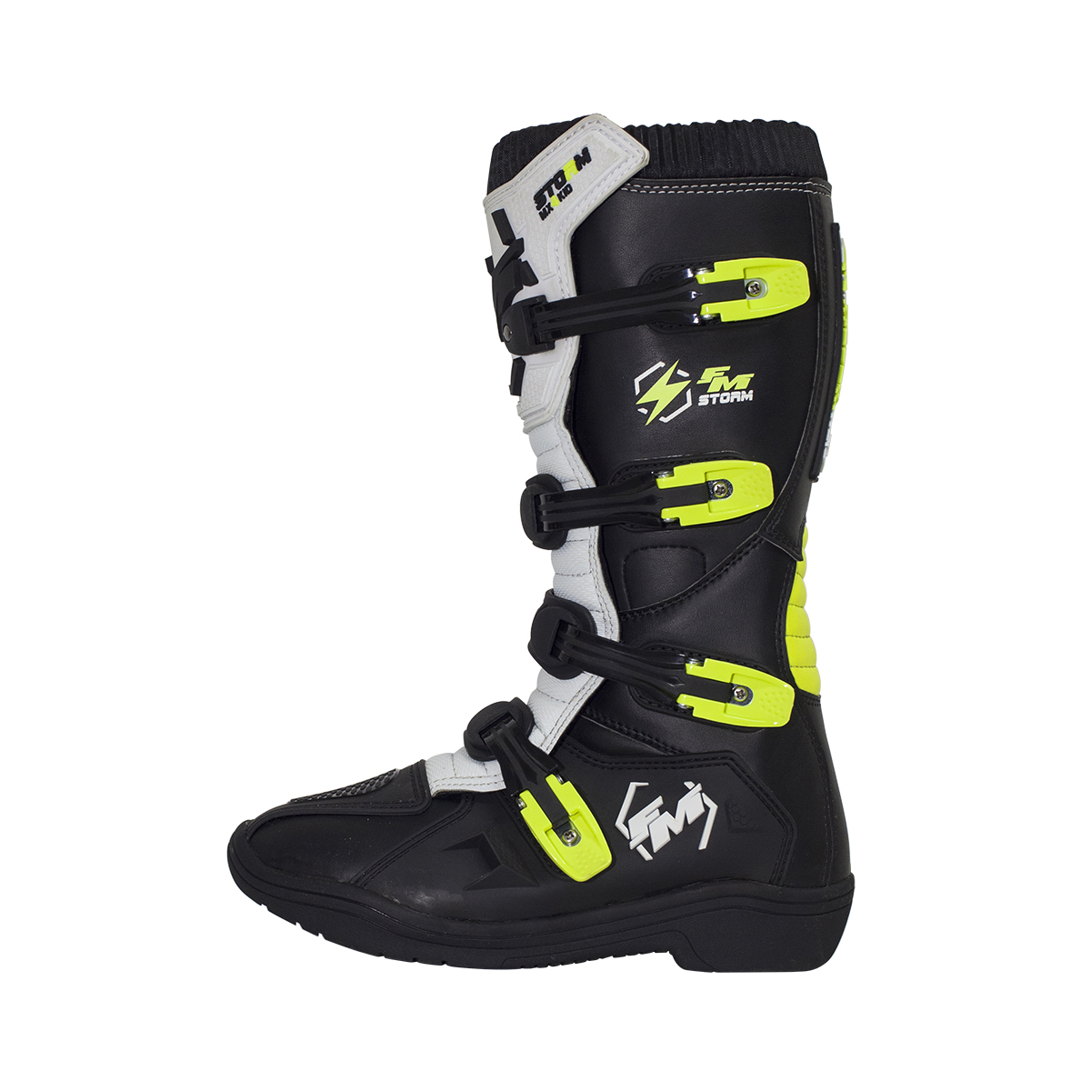 The YOUTH STORM MX BOOTS are made as the adult ones to garantee to your little champion all the best: plastic buckle system, resistant to oil and hydrocarbons sole, dual composite sole with stinless steel sole guard, comfortable anatomic footbed, inner lining leaves transpire the foot.