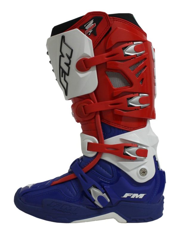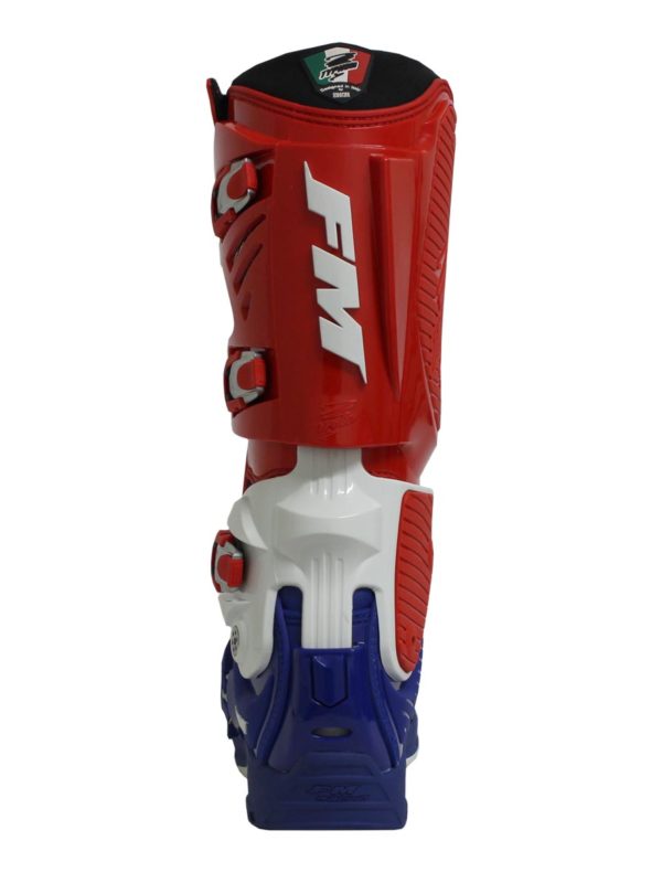 Costruito seguendo un progetto esclusivo FM RACING lo stivale TYPHOON è dotato di funzioni di sicurezza e comfort. L’esclusivo snodo TFP – Total Flex Protection , che consente la naturale flessibilità dei tuoi piedi e delle gambe, pur mantenendo una rigida forma laterale. Ogni fibbia dello stivale è costruita in lega di alluminio per una chiusura sicura. Le suole termosaldate e resistenti agli idrocarburi con sistema antishock e rinforzate con all’interno un anima in acciaio per una maggiore rigidità, protezione e resistenza. La parte centrale della suola, può essere sostituita per ridare allo stivale nuova vita.Il confort interno garantito da una fodera traspirante e dal gel interno ergonomicamente posizionato per il supporto della caviglia aiuta a mantenere i piedi ben saldi sulle pedane. Lo stivale TYPHOON è dotato di parti rimovibili e sostituibili, tra cui suola, fibbie, plantare snodo TFP e placca frontale, in modo da poter ricostruire o sostituire parti dello stivale usurate. Dopo l’acquisto è importante considerare che lo stivale per raggiungere un ottima flessibilità e aumentare la sensibilità deve superare un rodaggio di almeno due turni di allenamento, dopo potrete godere a pieno delle caratteristiche dello stivale.