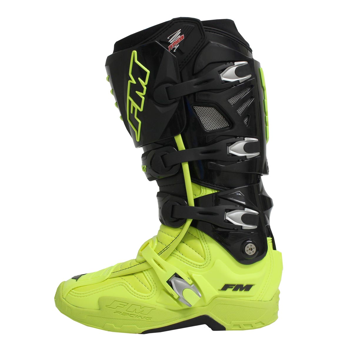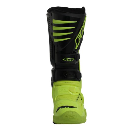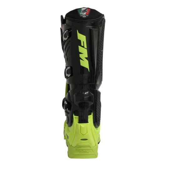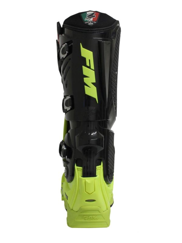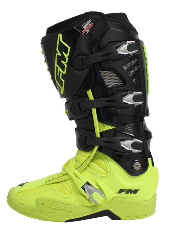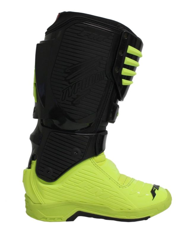 Costruito seguendo un progetto esclusivo FM RACING lo stivale TYPHOON è dotato di funzioni di sicurezza e comfort. L’esclusivo snodo TFP – Total Flex Protection , che consente la naturale flessibilità dei tuoi piedi e delle gambe, pur mantenendo una rigida forma laterale. Ogni fibbia dello stivale è costruita in lega di alluminio per una chiusura sicura. Le suole termosaldate e resistenti agli idrocarburi con sistema antishock e rinforzate con all’interno un anima in acciaio per una maggiore rigidità, protezione e resistenza. La parte centrale della suola, può essere sostituita per ridare allo stivale nuova vita.Il confort interno garantito da una fodera traspirante e dal gel interno ergonomicamente posizionato per il supporto della caviglia aiuta a mantenere i piedi ben saldi sulle pedane. Lo stivale TYPHOON è dotato di parti rimovibili e sostituibili, tra cui suola, fibbie, plantare snodo TFP e placca frontale, in modo da poter ricostruire o sostituire parti dello stivale usurate. Dopo l’acquisto è importante considerare che lo stivale per raggiungere un ottima flessibilità e aumentare la sensibilità deve superare un rodaggio di almeno due turni di allenamento, dopo potrete godere a pieno delle caratteristiche dello stivale.